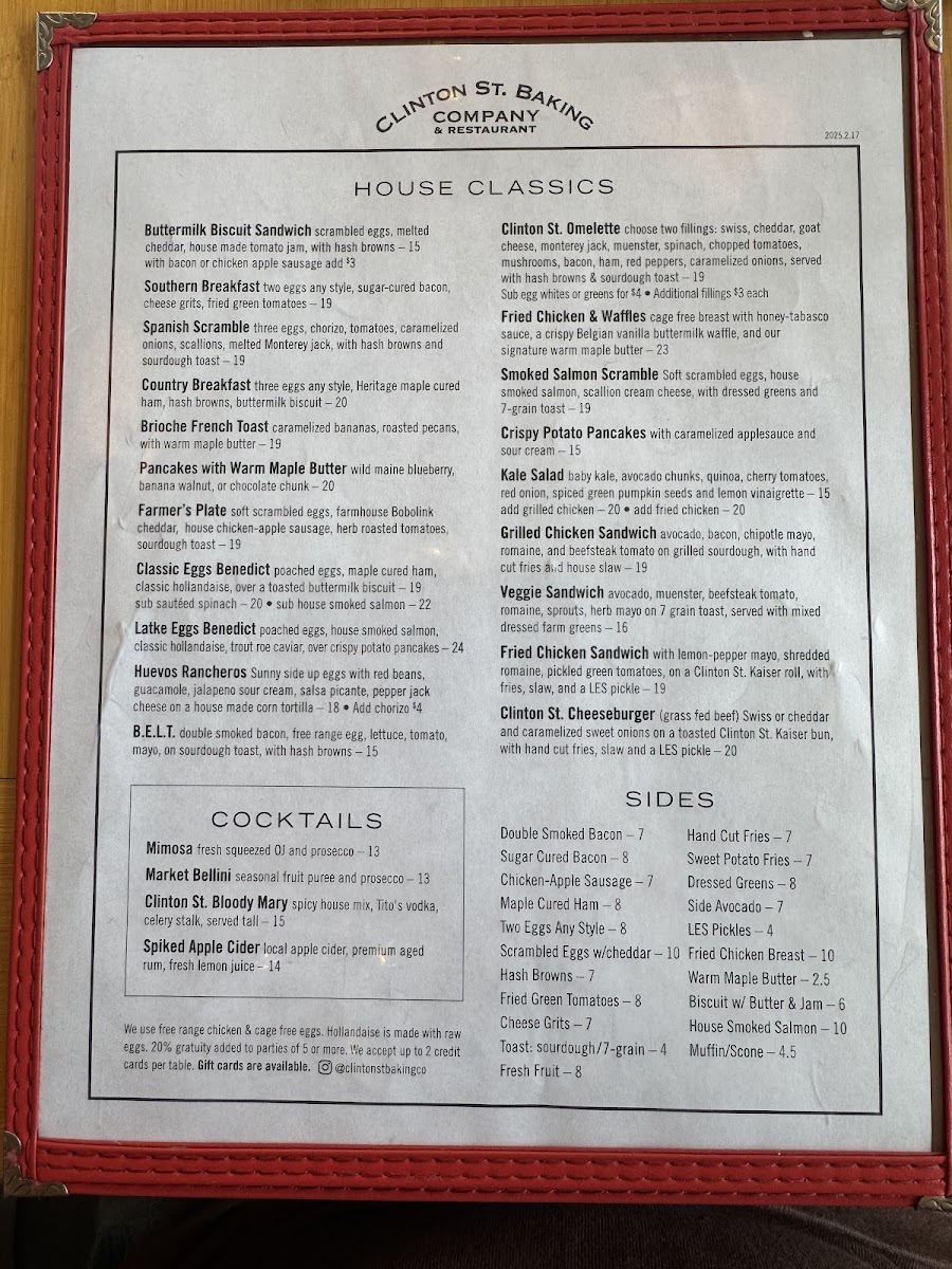 Clinton St. Baking Company Menu